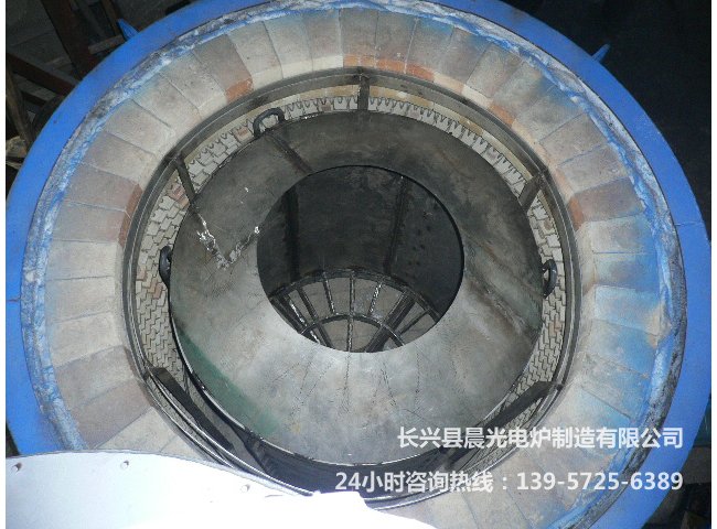 ⑶ 炉盖升降机构采用电动液压装置;炉盖旋转轴双向装轴承,上部轴座内竖放滚针,使炉盖升降、旋转平稳、更轻巧。炉盖密封采用砂封结构。